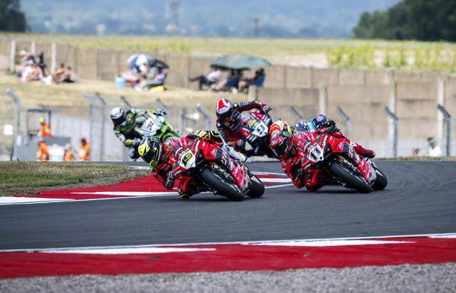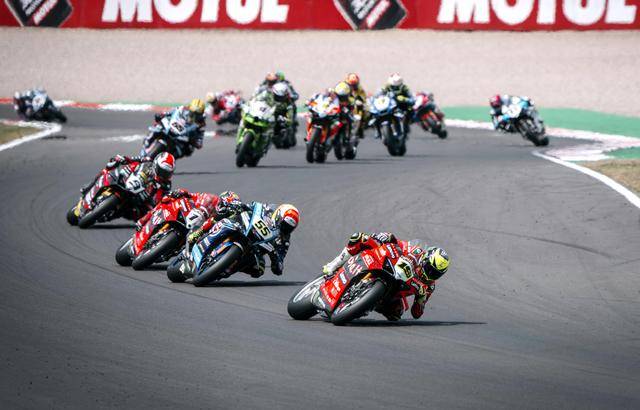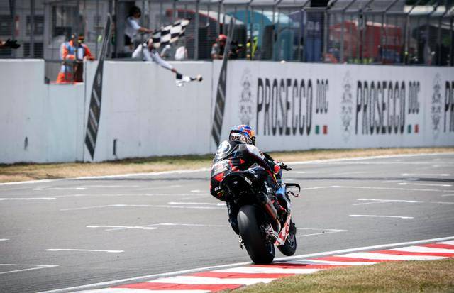 周末(七月 12 日)進行的 WSBK 級別第一節(jié)正賽,23 圈的比賽、經(jīng)歷了前 3 圈的混戰(zhàn)之后,拉格里奧盧到第 4 圈、奪回了領(lǐng)先的位置,此后一路快放,最終在毫無壓力之下、輕松奪得了第一節(jié)比賽的冠軍;后面,布雷加落后前車 6 秒多、獲得了亞軍;來自獨立車隊、9 號車的意大利車手佩魯奇(Danilo Petrucci)拿到了季軍。