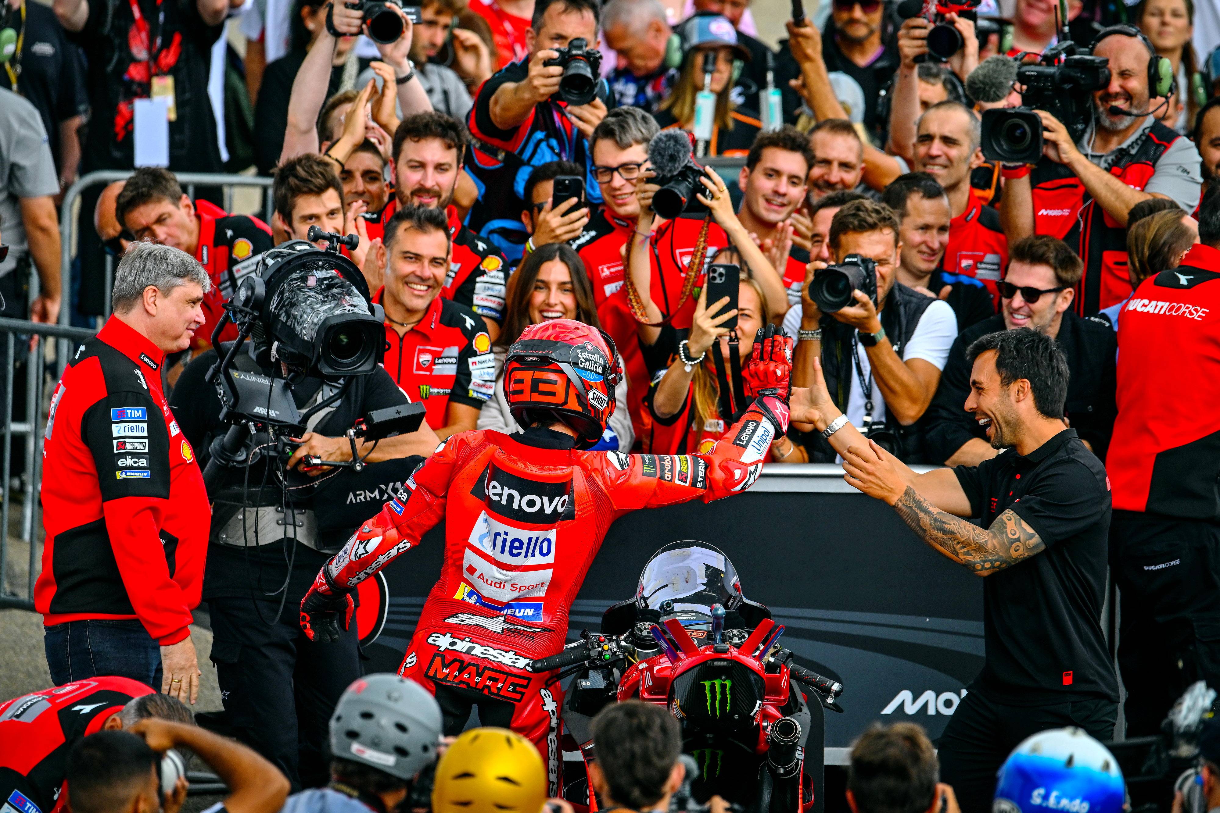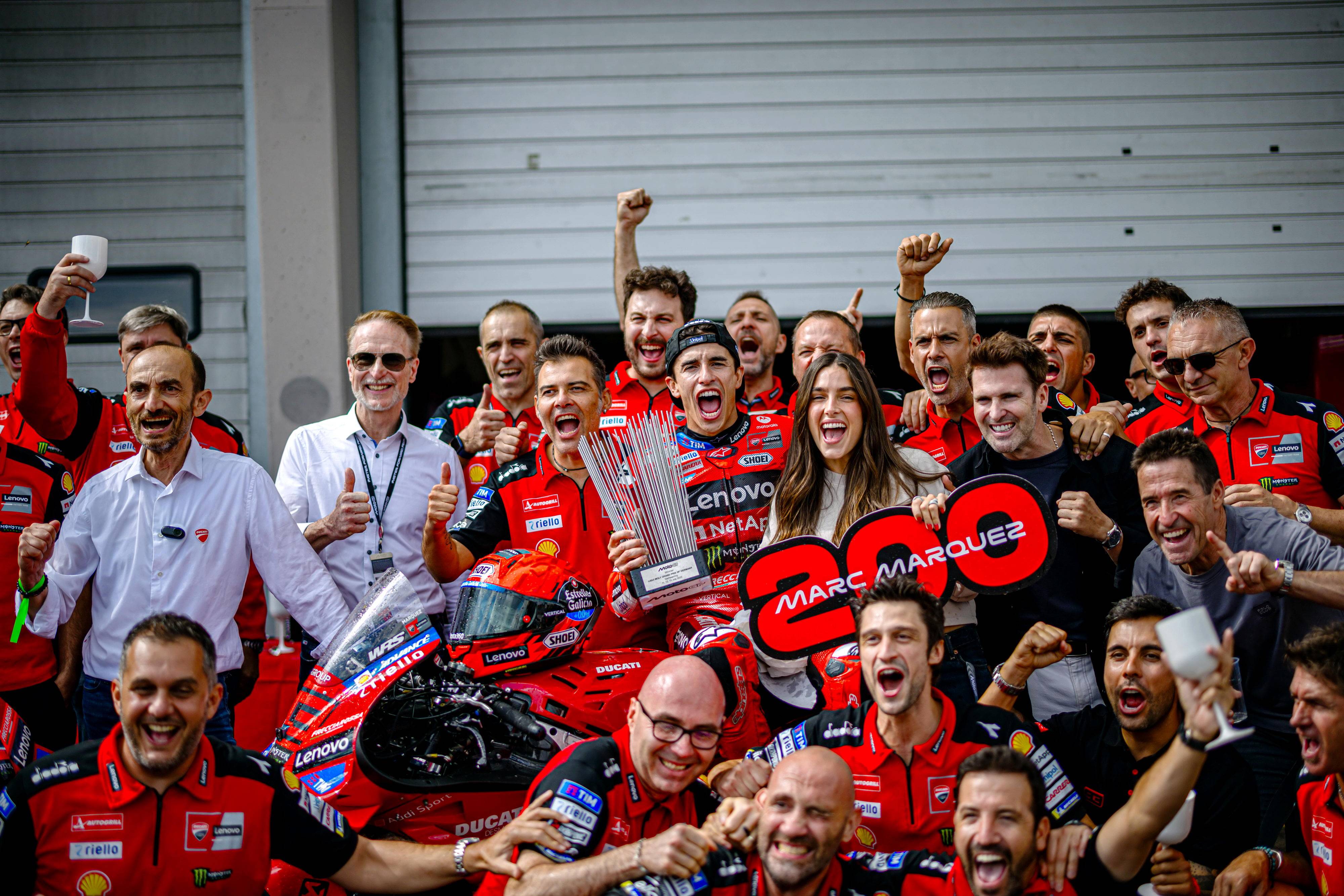 賽后,馬昆斯表示,“ 能以冠軍去慶祝我的第 200 場最高級(jí)別大獎(jiǎng)賽、這顯然是太棒了。我真的很想在薩森靈賽道取得這場勝利,因?yàn)槲覀兌贾溃@條賽道很適合我。(盡管)瀝青路面很滑,但我騎得很好,也保持了專注 —— 這對(接下來的)賽季后半段來說至關(guān)重要 ... ... ... ”