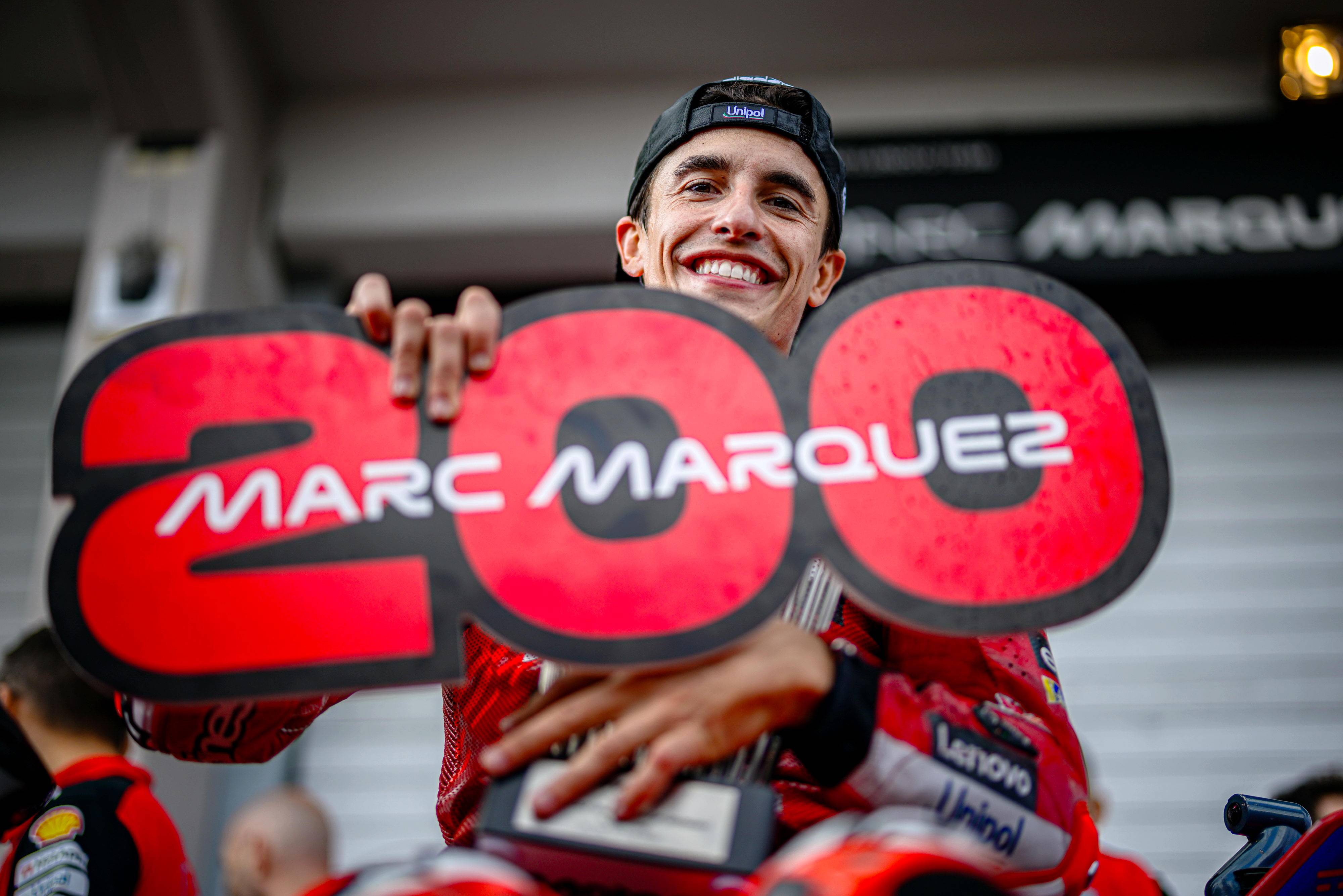德國站的比賽、是這位現(xiàn)年三十二歲老將在最高級(jí)別的第 200 場比賽(如果加上 WGP125 和 Moto2 級(jí)別,2025 德國站是他在 GP 職業(yè)生涯的第 278 場比賽);德國站的勝利,讓這位 King of the Sachsenring “ 薩森靈之王 ” 的奪冠紀(jì)錄、被刷新至十二次(其中最高級(jí)別 MotoGP 為九次);這同時(shí)也是馬昆斯在 WGP 最高級(jí)別比賽中的第 69 個(gè)分站冠軍,是 WGP 世界錦標(biāo)賽歷史上、在最高級(jí)別獲勝次數(shù)第二多的車手(超過了此前排在第二、意大利車手 Giacomo Agostini 阿戈斯蒂尼的 68 次。而仍排在第一的、是拿到了 89 次分站冠軍的意大利車手 Valentino Rossi 羅斯)。