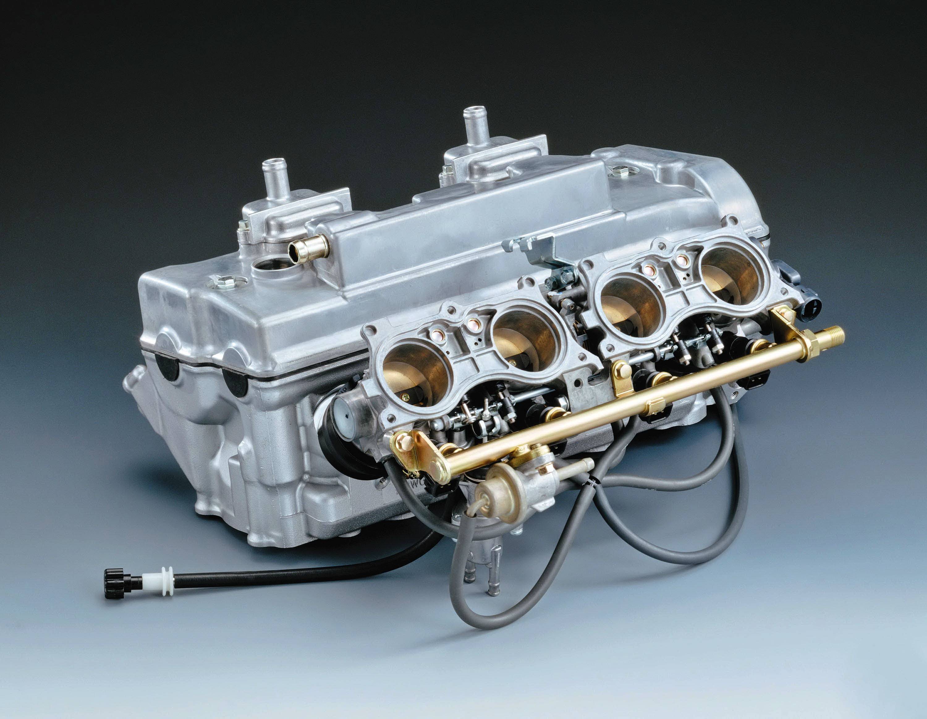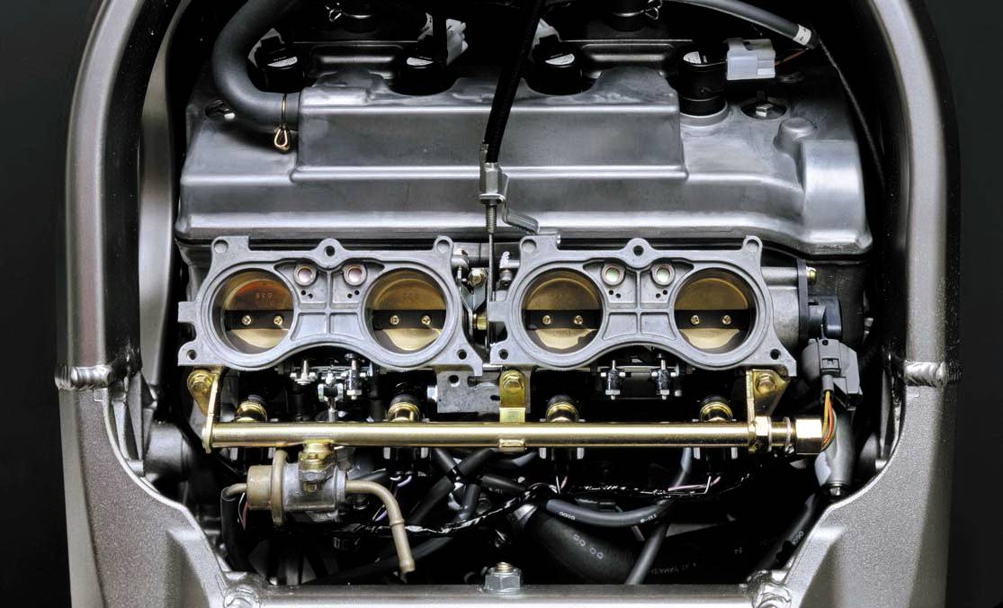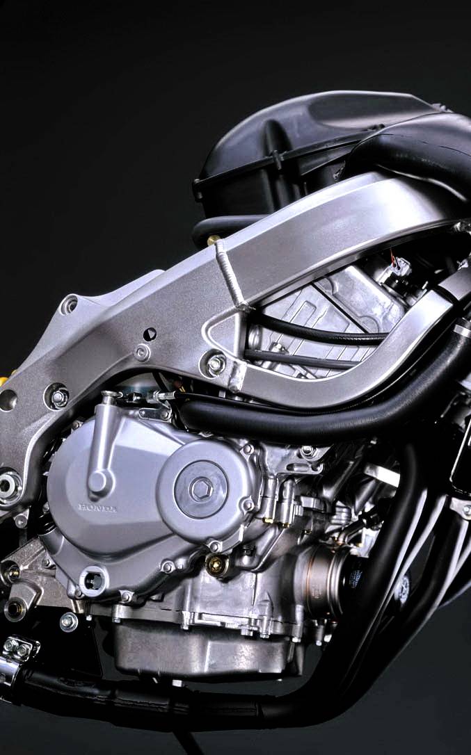 本期的主題車(chē)型,是 Supersport 最終型的 2001 - 2006 CBR600F4i。該車(chē)在上一版本 CBR600F4 的基礎(chǔ)上、修改而成,搭載一副與隨后發(fā)布的 2002 CBR600RR 相同缸徑、行程(67 mm x 42.5 mm)的水冷四沖程直列四氣缸、DOHC 每氣缸四氣閥發(fā)動(dòng)機(jī),排氣量 598 cc;標(biāo)志性的變化、是換裝了節(jié)氣閥口徑為 38 mm 的 PGM-FI 電子燃油噴注系統(tǒng),峰值動(dòng)力輸出仍為 110 匹。