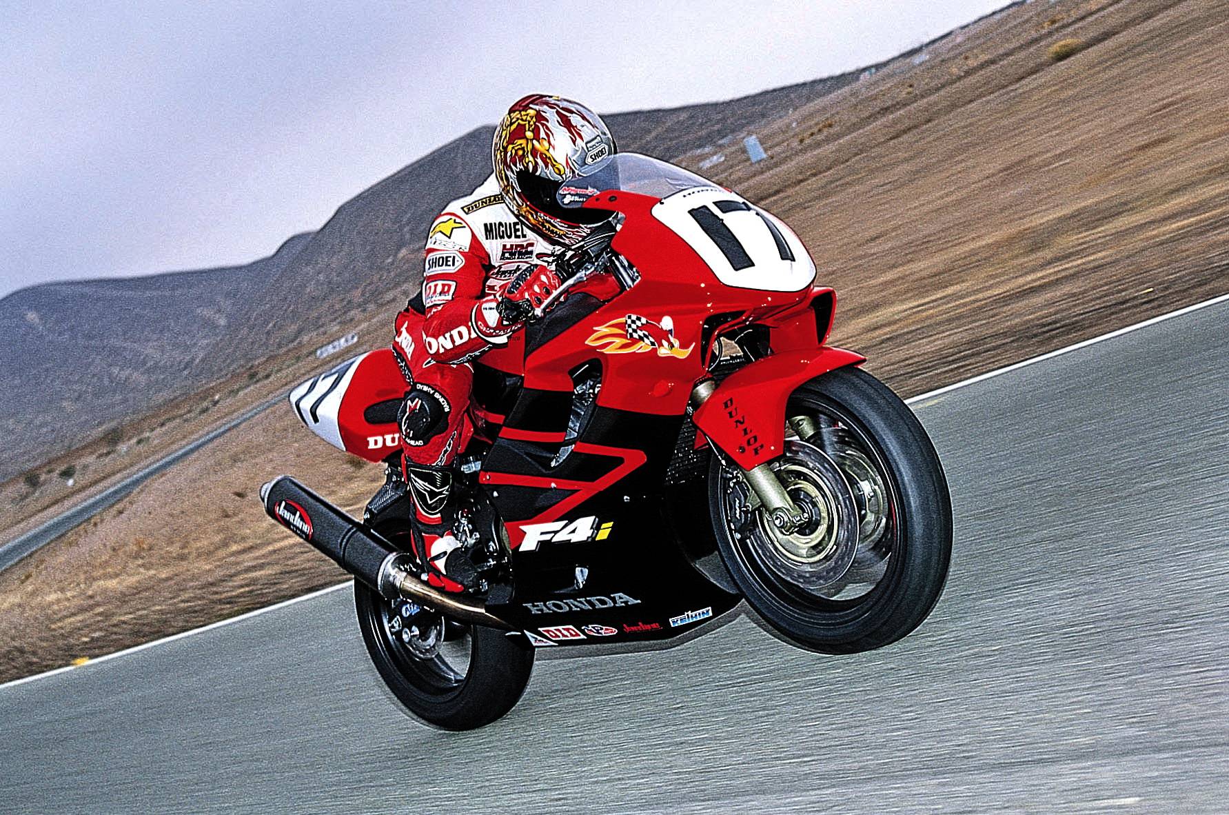 4、第四代:1999 - 2000 CBR600F,俗稱(chēng)的 F4,工廠編號(hào)為 PC35(前期型),搭載一副全新設(shè)計(jì)的水冷四沖程直列四氣缸、DOHC 每氣缸四氣閥發(fā)動(dòng)機(jī),缸徑、行程修改為 67 mm x 42.5 mm,排氣量 598 cc,配備了口徑為 36.5 mm 的化油器,最大動(dòng)力輸出提高至 110 匹;車(chē)體采用了全新的外觀造型設(shè)計(jì),換上了鋁合金鋼制的雙翼樑式車(chē)架,正立式前叉也換裝了叉芯口徑為 43 mm 的配套;