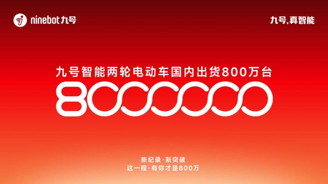 通過與年輕群體加強鏈接,九號公司在產(chǎn)品銷量上也獲得了穩(wěn)步增長,第三方數(shù)據(jù)挖掘和分析機構(gòu)iiMedia Research(艾媒咨詢)授予九號公司“2023-2024年連續(xù)2年高端電動車全球銷量第一”“2022-2024年連續(xù)3年智能電動車全球銷量第一”等認證,就在昨天,九號電動第800萬臺智能兩輪電動車完成出貨,僅用60天,就新增100萬臺出貨量,不斷刷新行業(yè)增速紀錄。