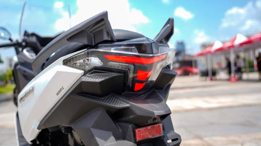 三陽(yáng)首款250踏板,巡弋250在貴州遵義發(fā)布,零售價(jià)22980元,限時(shí)優(yōu)惠1000元。整車造型非常有辨識(shí)度,線條凌厲,家族化前臉設(shè)計(jì),運(yùn)動(dòng)大踏板的范兒。LED透鏡大燈,前轉(zhuǎn)向燈集成再后視鏡支架上;新設(shè)計(jì)的尾燈,采用三段式箭頭LED燈組,尾燈面積提升40%,加上熔巖燈腔式設(shè)計(jì),更有效警示后方車輛。超大的前風(fēng)擋,可以上下兩檔安裝(需擰螺絲),目測(cè)風(fēng)擋高度足夠,長(zhǎng)途摩旅無(wú)須改裝風(fēng)擋。超大前手套箱,可容納一瓶普通純凈水加小瓶純凈水,內(nèi)有USB和TYPE-C雙充電接口。右邊為電池倉(cāng),擰開(kāi)螺絲就可以直接拆裝電池,終于不用拆車殼裝電池了。全彩液晶儀表,無(wú)鑰匙啟動(dòng)系統(tǒng),12升中置油箱。尤其值得一提的是座桶空間高達(dá)45升,可容納2頂全盔(其中一頂要小一點(diǎn)),這應(yīng)該是目前250踏板中座桶容積最大的。三陽(yáng)全新研發(fā)的水冷四氣門250引擎,采用航鈦陶瓷汽缸,更耐磨耐高溫,油耗更經(jīng)濟(jì),最大功率18.1KW/8000rpm,24N.m/6000rpm,優(yōu)化CVT 傳動(dòng)系統(tǒng),加速線性。賬面參數(shù)上,巡弋250要比光陽(yáng)賽艇S250的17.2kw/7500rpm,23.6N.m/6000rpm略大一點(diǎn),191的整備質(zhì)量也比光陽(yáng)小1公斤,可以預(yù)見(jiàn)其提速性能相當(dāng)強(qiáng)勁。前對(duì)向四活塞卡鉗,配260mm大直徑剎盤,后單向雙活塞卡鉗配240mm剎盤,組合雙通道博世ABS,以及博世TCS系統(tǒng),安全配置一步到位。后五段預(yù)載可調(diào)雙彈簧減震,前正立式套筒減震,帶防塵套。同時(shí)水冷器在車輛正前方,騎行時(shí)直面正面氣流,帶來(lái)更好的散熱效果。全車大量采用名牌零部件。座桶相當(dāng)友好,實(shí)測(cè)165身高男士可以半腳掌著地,172身高可以全腳掌著地。現(xiàn)場(chǎng)簡(jiǎn)單試駕后,最大感受就是起步平順絲滑,提速感較強(qiáng)且平順,震動(dòng)抑制優(yōu)秀。