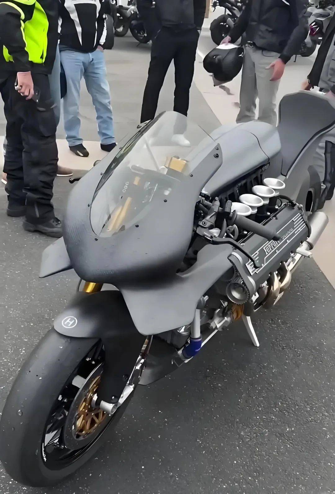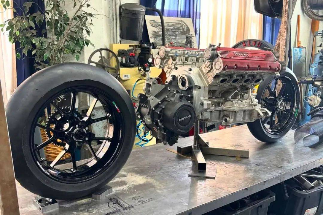 將法拉利F355 V8發(fā)動機安裝到一輛摩托車上,美國加州的Maxwell Hazan,改裝出了一臺怪物級別的摩托車HF355,功率重量比達到了頓馬1500匹/頓,遠超S1000RR的1000匹/頓。很顯然,這不是一臺正常的摩托車發(fā)動機,這個動力平臺來自法拉利F355,是一臺3.5升(3495cc)的V型8缸自然吸氣發(fā)動機。
