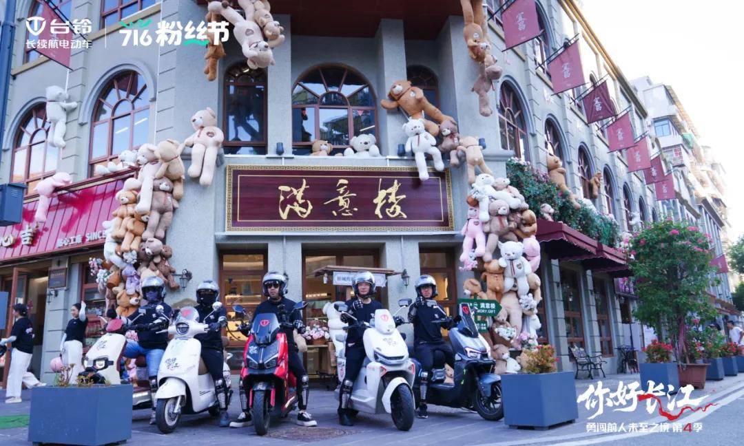 行至二馬路文化街,“滿意樓”外墻垂?jié)M毛絨熊,這景象恍若將童話劇場(chǎng)搬進(jìn)潮流街區(qū),騎手們的黑色著裝與萌趣熊影碰撞出奇妙反差,引得路人駐足觀望!