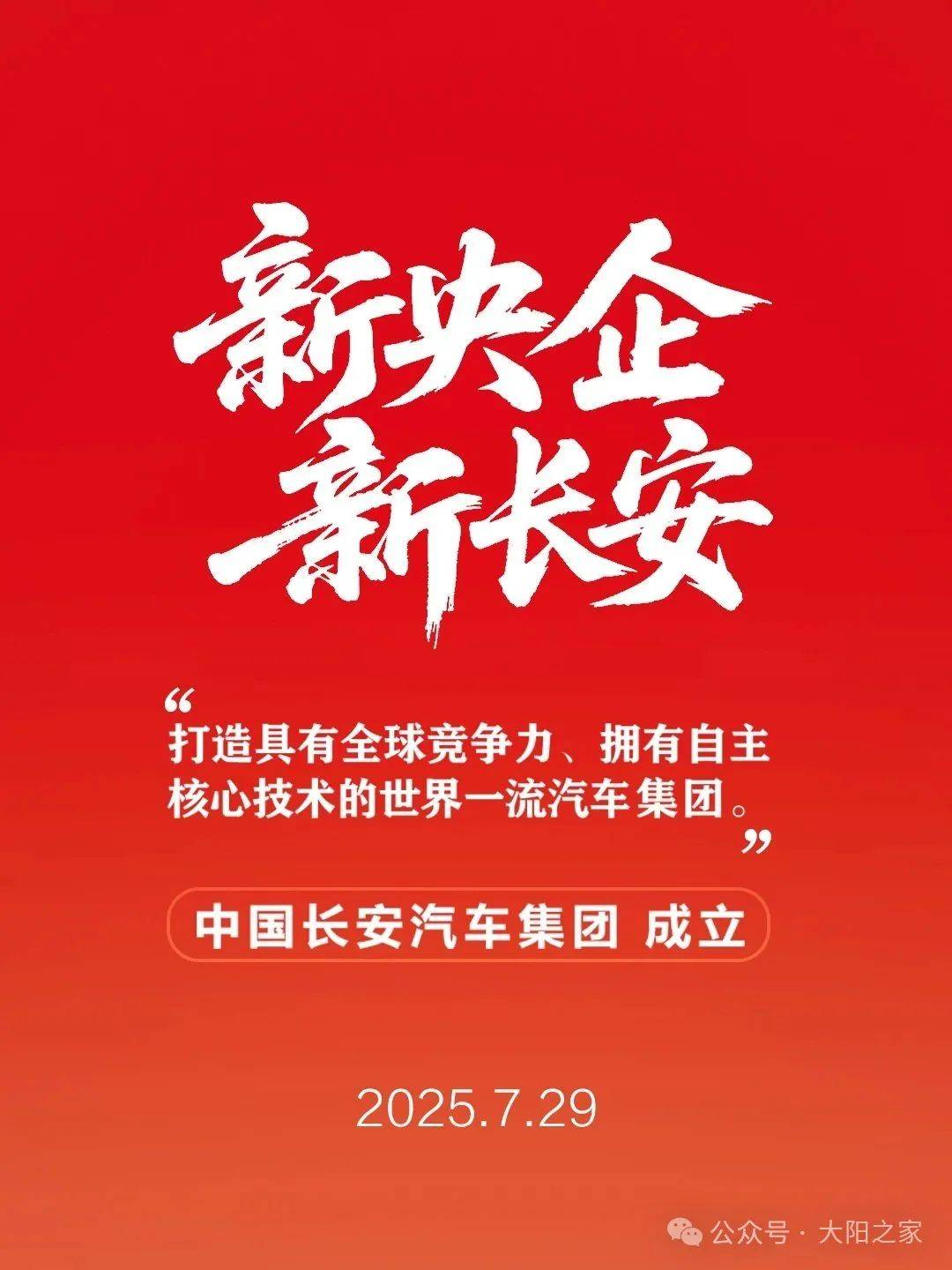 在百年變局與產(chǎn)業(yè)變革交匯的時代浪潮中,中國汽車工業(yè)迎來又一里程碑時刻——2025年7月29日,中國長安汽車集團有限公司(以下簡稱“中國長安汽車”)在重慶正式揚帆起航!這一承載國家戰(zhàn)略與行業(yè)期待的中央企業(yè),將全面開啟跨越式發(fā)展的嶄新篇章。