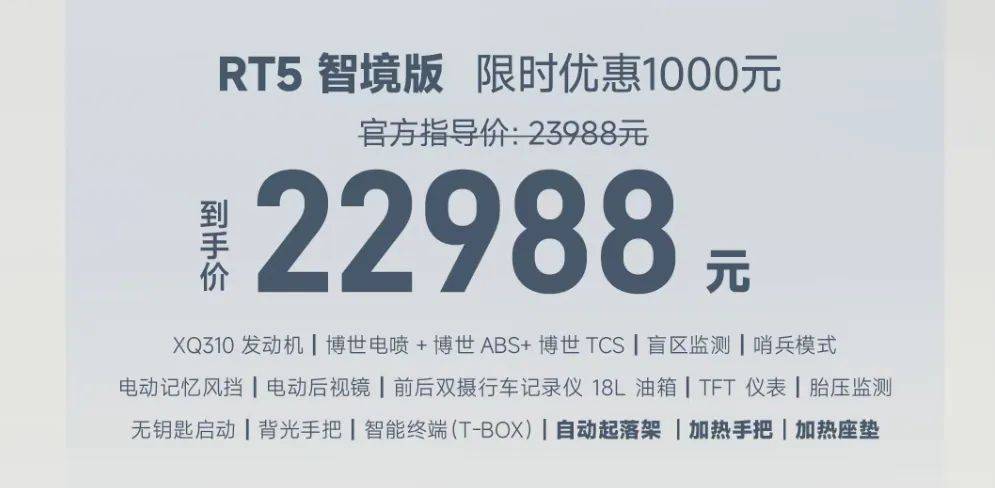 核心提示:當(dāng)同級踏板還在為電動風(fēng)擋、雙通道ABS、TCS等配置爭作頂配時,賽科龍RT5以越級科技重新定義豪華大綿羊。限時驚喜價22,988元,更