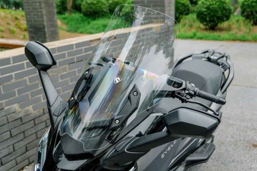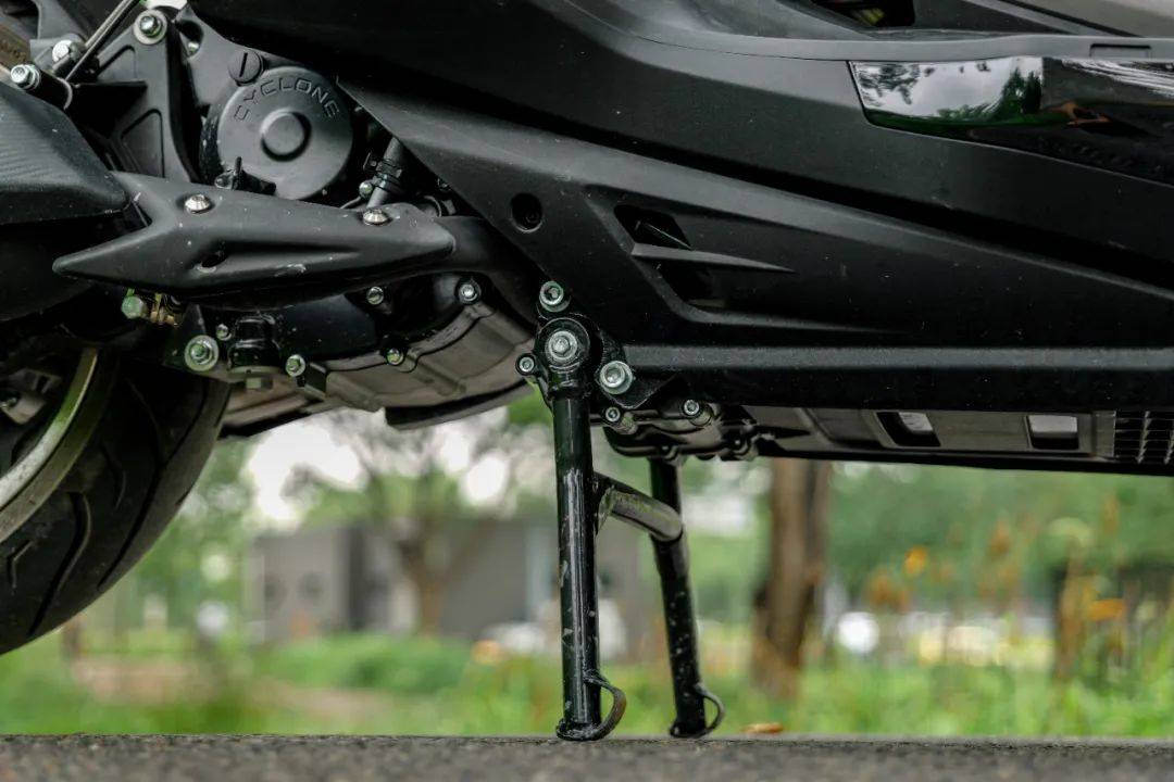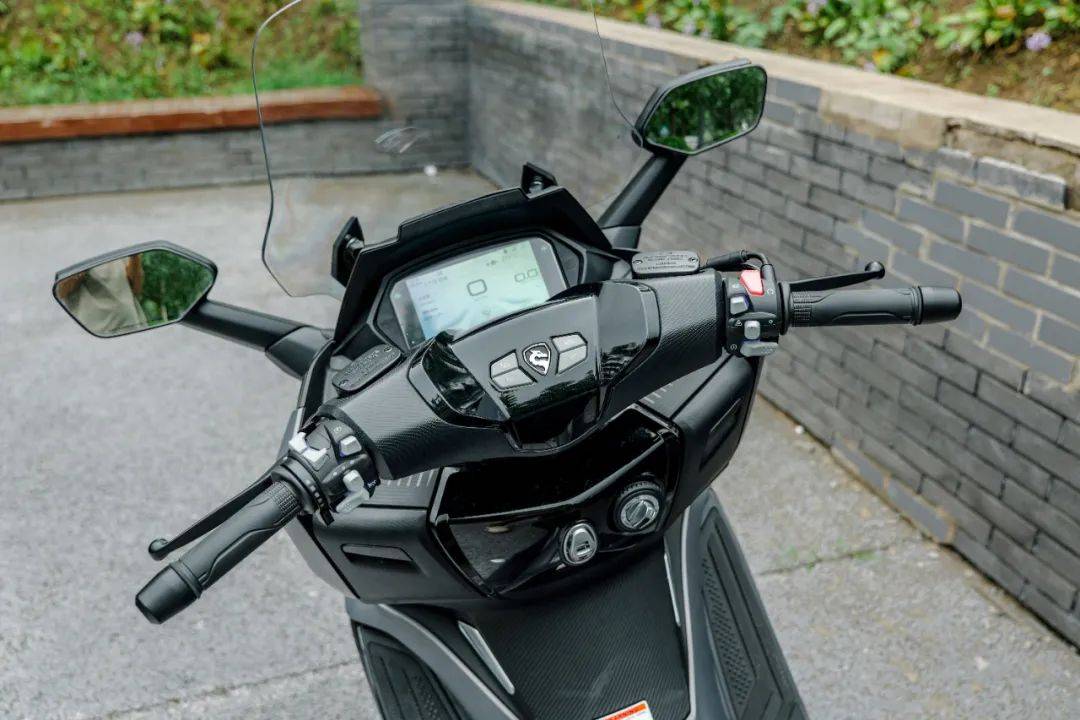 RT5在日常使用體驗(yàn)上的提升同樣令人印象深刻,其豐富的電動配置功不可沒。除了行業(yè)漸趨普及的電動風(fēng)擋,RT5更配備了 電動后視鏡和極具亮點(diǎn)的 電動起落架(電動大支)。車輛熄火時,風(fēng)擋自動降至最低,后視鏡自動折疊收回;再次通電啟動,風(fēng)擋和反光鏡又會自動恢復(fù)到駕駛員預(yù)設(shè)的記憶位置,這套充滿儀式感的“自動復(fù)位”流程令人愉悅。電動大支則徹底改變了駐車方式,即使在坡道上也能一鍵輕松支起車輛。經(jīng)小潘親測,其動力強(qiáng)勁可靠,即使承載兩名成年騎手,也能穩(wěn)穩(wěn)立起,并具備鎖定功能,確保車輛在坡道或外力作用下也不會意外移動,極大提升了駐車的便捷性與安全性。