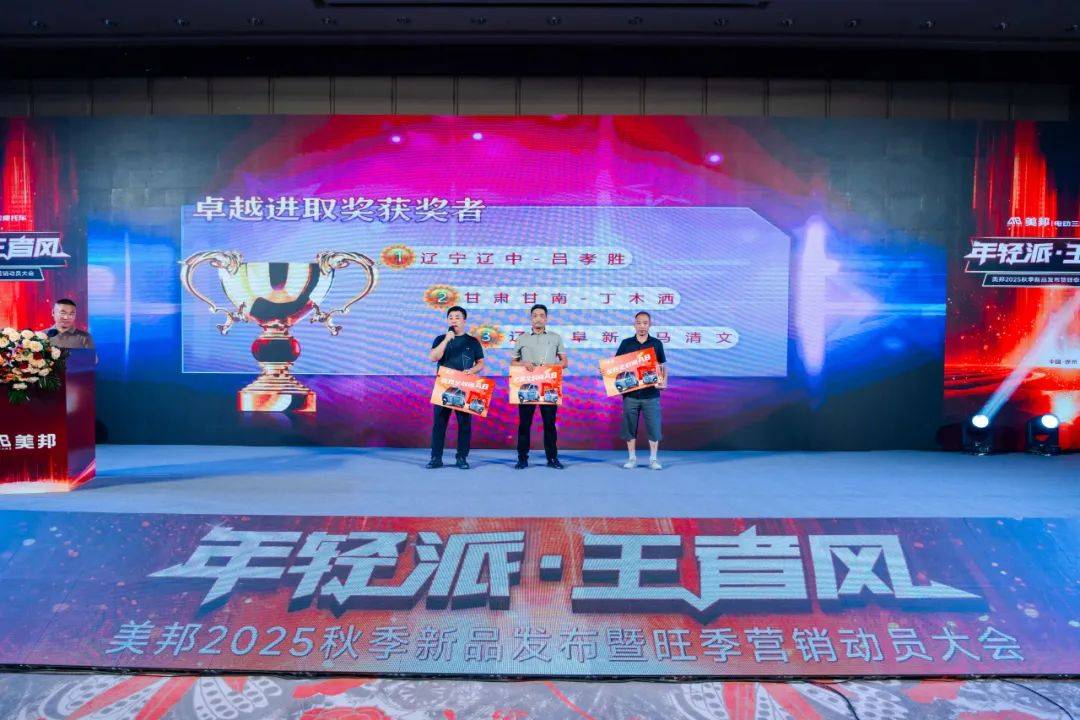 同時,在美邦電三首次獨立營銷峰會這一特殊日子里,郭總向品牌試運營期間與美邦電三并肩戰(zhàn)斗的合作經銷商伙伴致以衷心感謝,并邀請優(yōu)秀經銷商上臺接受表彰,分別授予美邦2024-2025年度開拓創(chuàng)新獎、卓越進取獎、營銷風云獎三大獎項,3名優(yōu)秀經銷商代表分別發(fā)言。