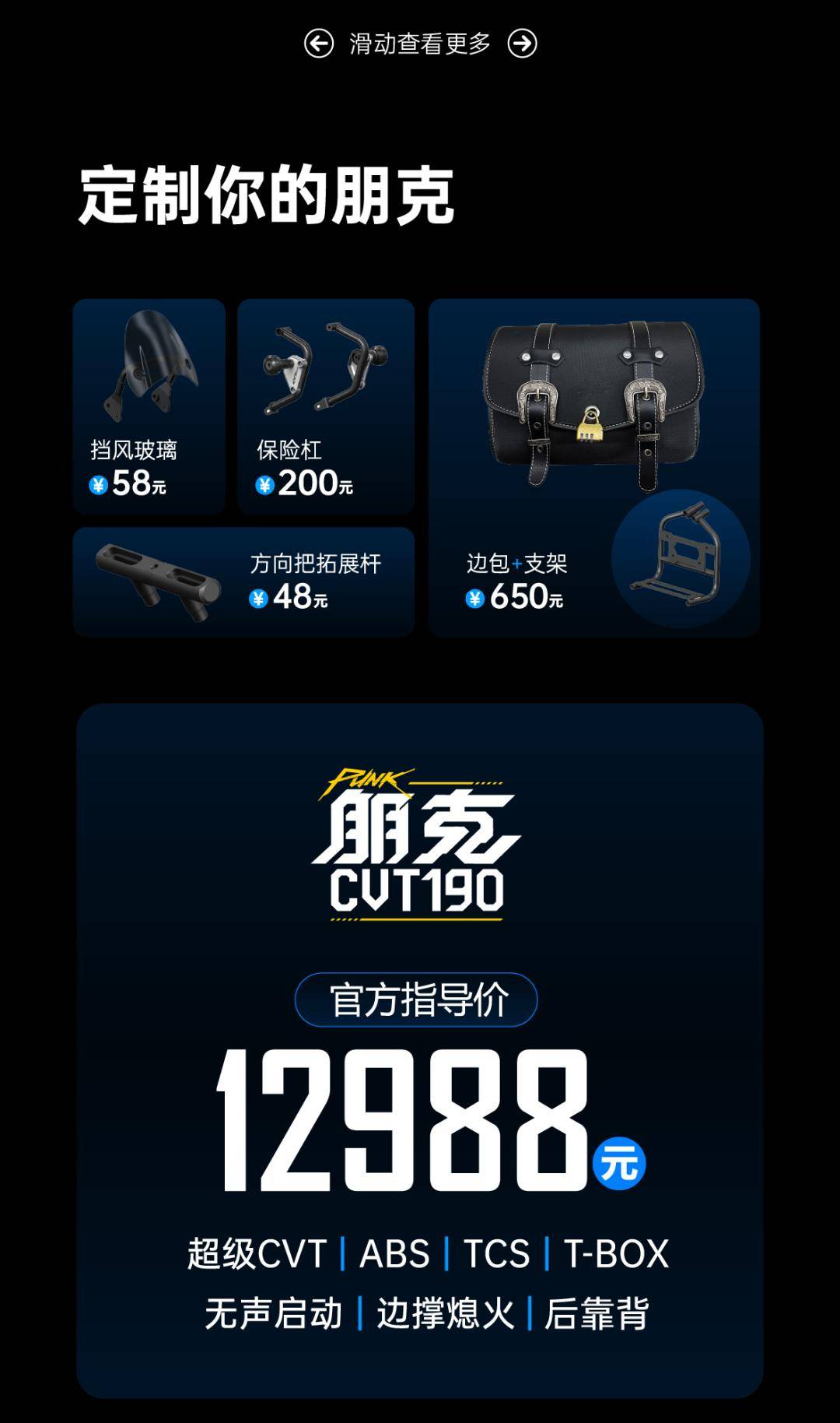 12988元,賽科龍自動擋運動巡航——朋克CVT190上市