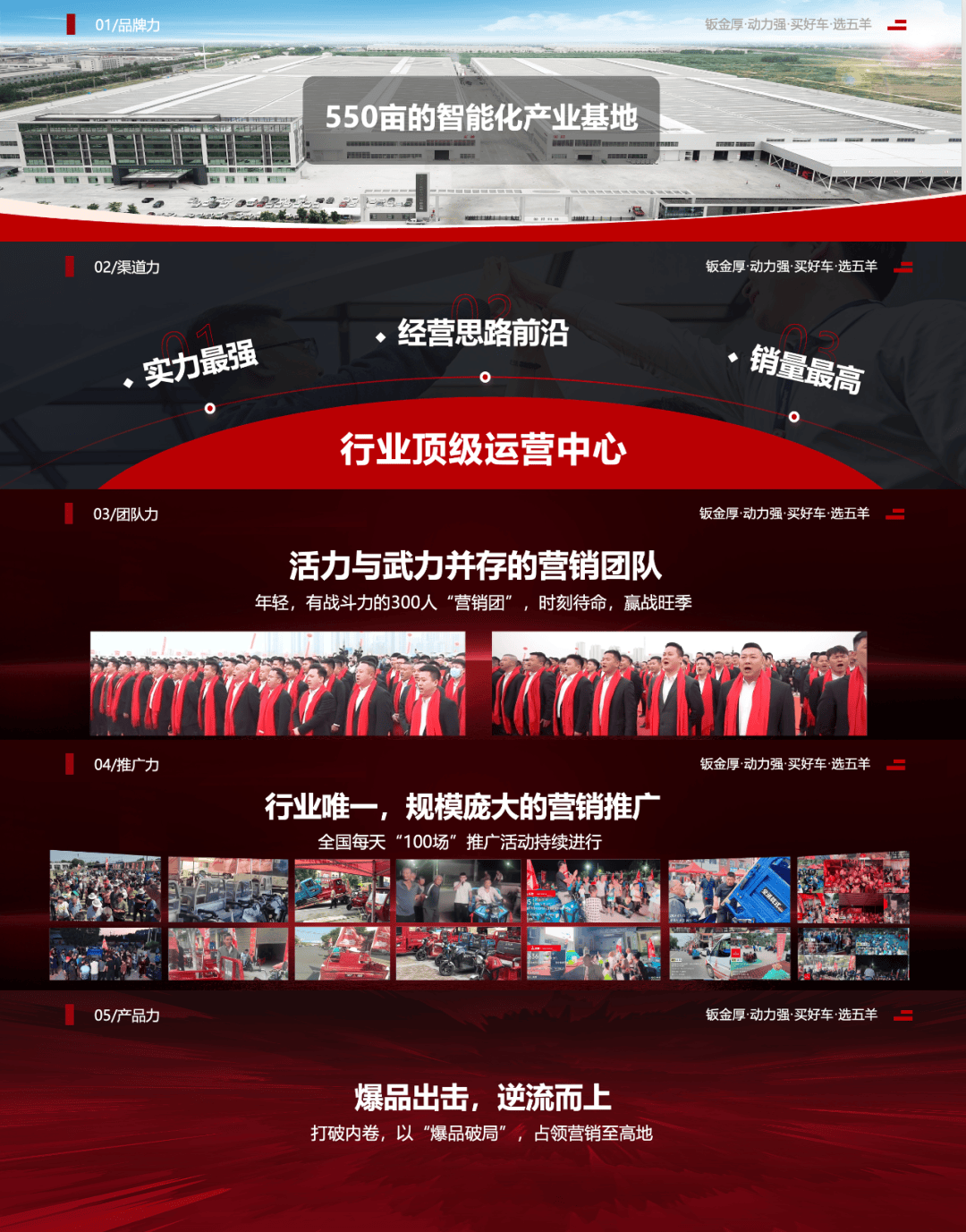 五羊電三產(chǎn)品力已經(jīng)過市場驗證,不做過多贅述,而在品牌、渠道、團隊、推廣4大維度,五羊電三在行業(yè)中也可謂遙遙領先。從占地550畝、年產(chǎn)150萬臺的智能化產(chǎn)業(yè)基地,到行業(yè)頂級運營中心;從年輕、有戰(zhàn)斗力的300人規(guī)模“五羊營銷團”,再到行業(yè)“唯一”全國每天100場推廣活動的營銷力度,可以說五羊電三具備“海陸空全方位打擊能力”,是“全品類增長”戰(zhàn)略的基石與支撐。