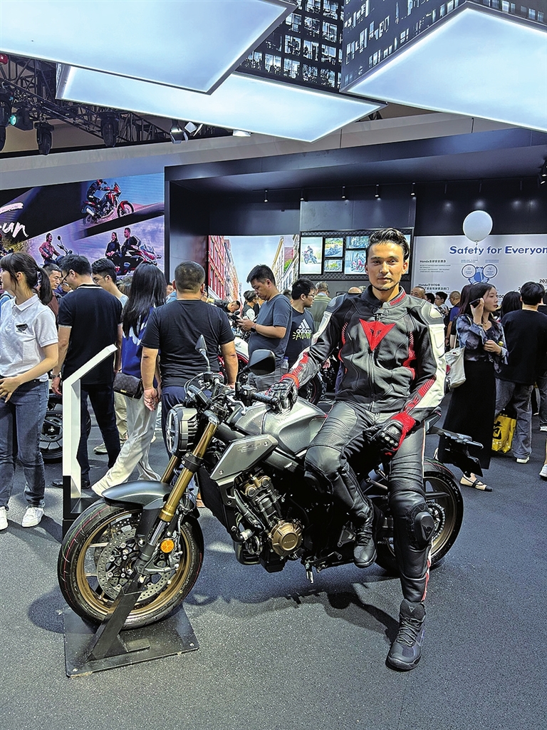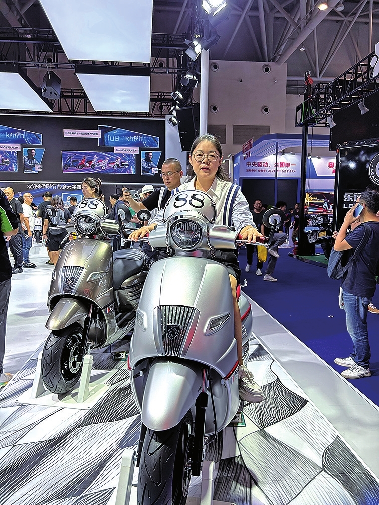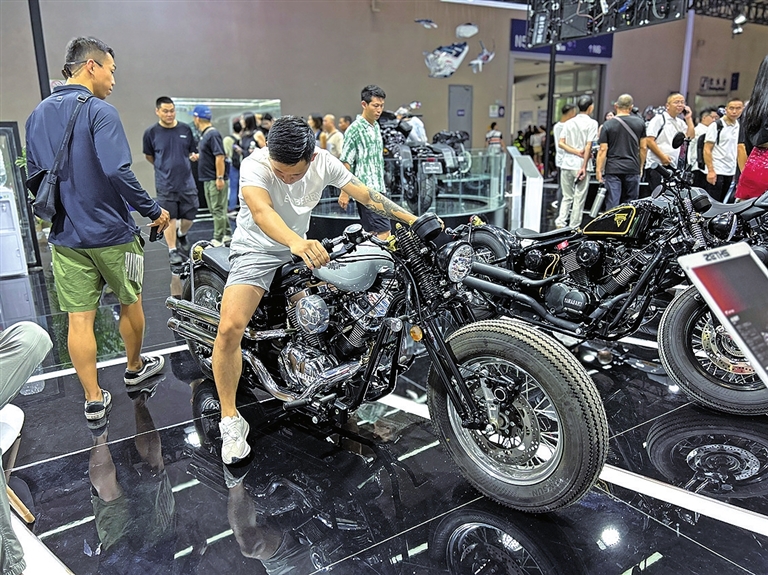 正在“摩博會(huì)”上體驗(yàn)新款摩托車的消費(fèi)者