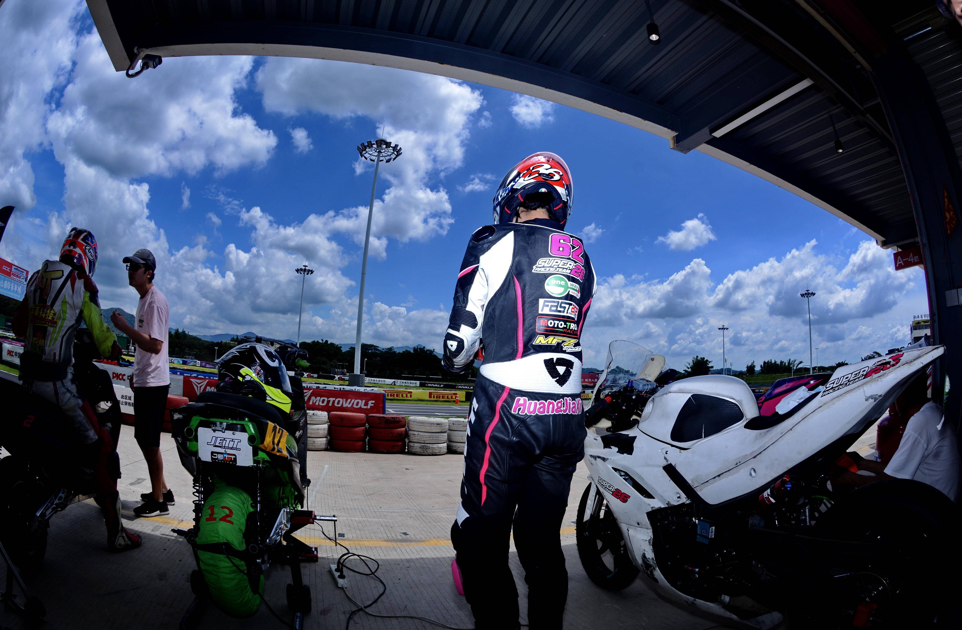 改裝街車公開組(雙缸組、單缸組)共有十五位車手報(bào)名參與本站比賽的角逐,實(shí)際參賽十四人,其中的雙缸組占了大部分,有包括三位女車手在內(nèi)的十一位車手參加,而駕駛著 2 號(hào)車的黃嘉欣、是三位女車手的其中之一。賽前的排位,黃嘉欣跑出了 59.271 秒的個(gè)人最佳圈速,第一節(jié)正賽從第九位發(fā)車。第一節(jié)比賽在飄著雨點(diǎn)的天氣之下進(jìn)行,黃嘉欣因滑倒而退賽;第二節(jié)比賽,她與對(duì)手的較量過程中發(fā)生擦碰、再次因?yàn)榘l(fā)生狀況而退賽。