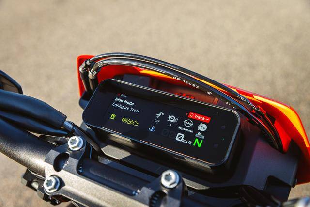 6、電子輔助控制系統(tǒng)方面,標配了可選的騎行模式,集成了 6D 傳感器的彎道 ABS(帶 Supermoto + ABS 模式)、彎道 MTC 牽引力控制系統(tǒng)。另有需額外付費的可選裝 Track 賽道模式(通過系統(tǒng)解鎖實現(xiàn)),該模式帶有啟動控制、發(fā)動機打滑控制、五級防車輪(翹頭)控制等功能;