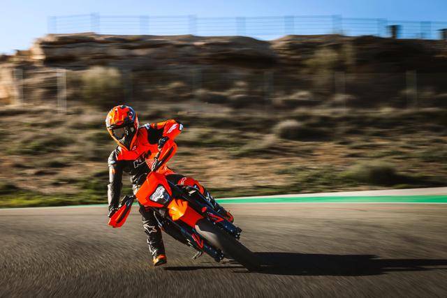 過去的幾年,KTMR2R 在國內(nèi)的官方銷售網(wǎng)絡(luò)里都沒有 690 SMC R,在此前公布的、接受預(yù)訂的車型里,也只有同 LC4 動力平臺、定價為 14.5 萬元的 690 Enduro R。而參考海外市場的售價,新的 2026 款 690 SMC R、其價格與 690 Enduro R 相同。