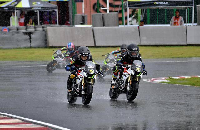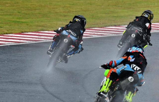 焦點(diǎn)的 Super Final 超級(jí)總決賽、在傾盆大雨中拉開(kāi)序幕,10 圈的比賽、看得場(chǎng)邊的家長(zhǎng)們聲嘶力竭。駕駛著 16 號(hào)車(chē)的林景源、在第一個(gè)彎取得領(lǐng)先之后,在水花飛濺的賽道上、始終保持了良好的節(jié)奏;一度超越了林景源,在第二節(jié)比賽中拿到了冠軍、來(lái)自美國(guó)的小車(chē)手 Zaal Farhand,在第 2 圈因?yàn)闄C(jī)械故障而退賽后,讓林景源在比賽的初段就基本確立了自己的領(lǐng)先位置。