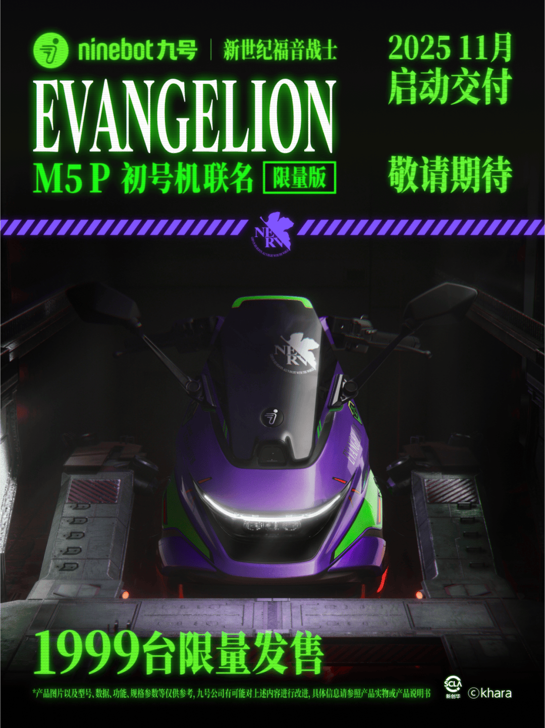 在本次發(fā)布會上,九號公司宣布攜手經典IP《新世紀福音戰(zhàn)士》,推出 M5 P 初號機限量聯(lián)名款。新車延續(xù)M5旗艦性能,以標志性的EVA機甲美學注入整車設計,賦予產品獨特的未來感與收藏價值。該車型將于 2025年11月正式開啟發(fā)售,限量身份讓它不僅是一臺智能電摩,更是屬于粉絲與玩家的專屬“機動出擊裝備”。