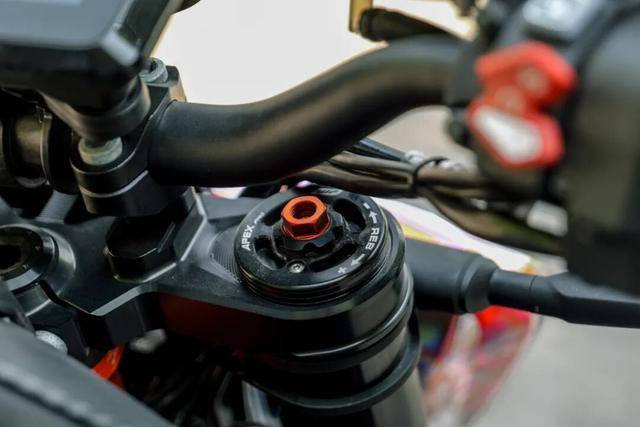 在碳纖外殼下,是一套為駕馭狂潮而生的硬核裝備。前WP APEX PRO 7548和后WP APEX PRO 7746懸掛系統(tǒng)堪稱賽道下放的黑科技,比1290SDR的前后減震進(jìn)一步提升。前倒叉為分體式壓縮回彈設(shè)計(jì),再加上封閉式腔體技術(shù)讓這款減震阻尼更加穩(wěn)定,頂級(jí)的機(jī)械減震。后減震裝備單獨(dú)儲(chǔ)油罐,更大儲(chǔ)油量,為減震器帶來更好散熱表現(xiàn),彈簧預(yù)載可在無工具情況下快速調(diào)節(jié),允許車手將避震器長度從353mm調(diào)整到360mm,憑借SCS BIG VALVE 大口徑閥片技術(shù),最大限度為車手提供精準(zhǔn)的反饋。當(dāng)車輛壓過彎中顛簸,這套懸掛以近乎讀心術(shù)般的響應(yīng)吸收震動(dòng),將干擾隔絕于車架之外,讓輪胎始終緊貼路面,這正是RR彎中如軌道車般穩(wěn)定的秘訣。再加上APEX Pro 7117可調(diào)肽尺,擁有30段可調(diào)阻尼。無論是街道還是賽道,這套減震完全可以應(yīng)付。