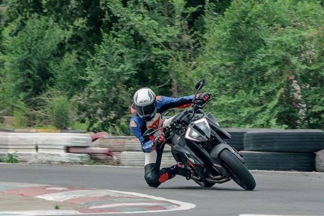 為了測(cè)試這款超越街車的靈活性,我們甚至還把它拉到了卡丁車賽道,一臺(tái)超越公升級(jí)的性能街車,一臺(tái)1482mm軸距的大家伙,在小賽道中的表現(xiàn)讓人出乎意料,即便是應(yīng)對(duì)狹小的掉頭彎,這款車也能很好的適應(yīng)。就像騎一臺(tái)被拉長的300級(jí)別仿賽一樣,除了軸距不同,整體的操控輕盈程度并沒有太大的變化。一臺(tái)公升街車在小賽道也能如此好上手,想必大家絕對(duì)想不到會(huì)是1290SDRR的表現(xiàn)吧。