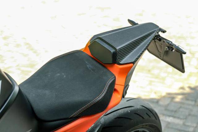 單搖臂設(shè)計(jì)堪稱點(diǎn)睛之筆,毫無遮掩地展示著輕量化七爪鍛造輪轂與200/55-17寬體輪胎,比較遺憾的是國內(nèi)版本沒有配備米其林CUP2,性能上略有遺憾。而RR版專屬的疊影涂裝,在光線流轉(zhuǎn)間仿佛賦予車身動(dòng)態(tài)殘影,即使靜置也充滿蓄勢(shì)待發(fā)的張力,這不僅是外觀的進(jìn)化,更是性能的宣言。