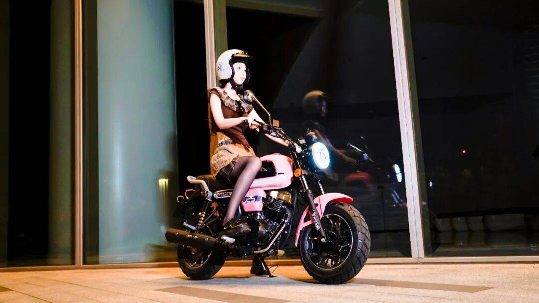 而設(shè)計,是低調(diào)的優(yōu)雅。圓潤的車身、復古的皮紋坐墊、鍍鉻的后視鏡和LED大燈,在陽光下流轉(zhuǎn)著細膩光澤。它不是張揚的猛獸,更像一只悄聲穿梭于樓宇之間的黑豹,輕巧、自信、不出聲卻自帶氣場。它不屬于嘈雜的機車轟鳴,而是都市漫游者的低調(diào)伴侶——通勤路上,它可靠務(wù)實;周末遠行,它浪漫隨行。