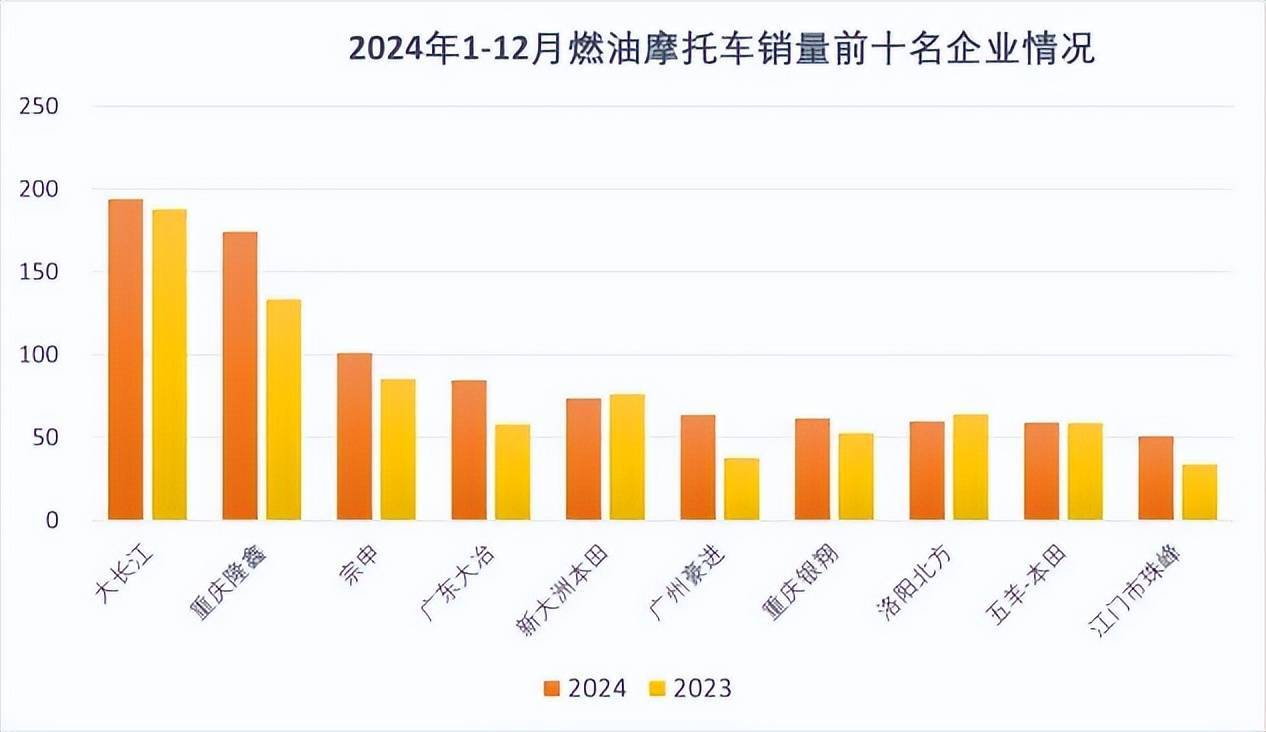 2024年全球摩托車銷量十強(qiáng)中,豪爵、隆鑫、宗申三家中國(guó)企業(yè)躋身前十。