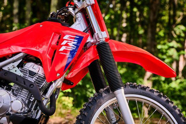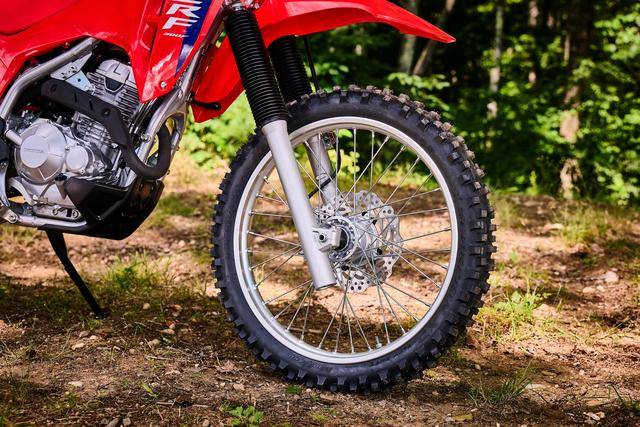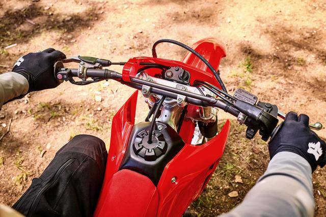 車體方面,采用一副鋼管制雙樑式的車架,全新設(shè)計(jì)的、類似于市售越野賽車 CRF250R/CRF450R 的外觀造型,叉芯口徑為 41 mm、行程為 240 mm 的正立式套筒前叉,Pro-Link 多連桿聯(lián)接的后減震;前后波浪式的剎車碟,前 21、后 18 英寸直徑的車輪,標(biāo)配了倍耐力蝎子XC(Pirelli Scorpion XC)輪胎,全車整備重量只有 114 公斤。
