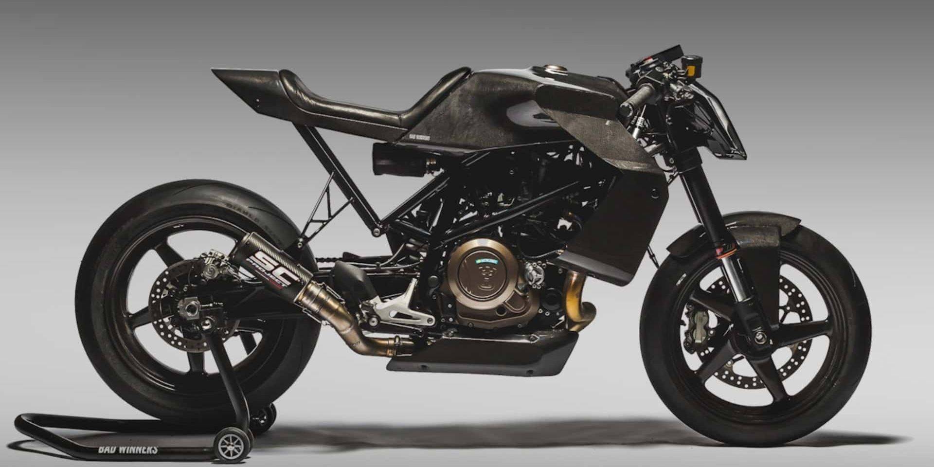 Vitpilen 701 原本就不是「比排量」的直線猛獸,而是單缸、85 匹馬力、講究靈活與駕馭感的街車。 Bad Winners 替它換上碳纖維外殼與 Dymag 碳纖維輪框,重量硬是比原廠少了近 27 公斤,再搭配 SC Project 排氣、Power Commander 電腦與 K&N 濾芯,讓它徹底成為一輛極致輕量化的控機(jī)器。