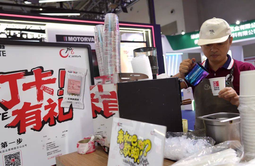 而在舒適的展館布置下,古思特還有著本屆中國摩博會(huì)上熱度極高,且福利直接拉滿的現(xiàn)場安排。在打卡區(qū)關(guān)注古思特公眾號(hào)就能領(lǐng)到專屬的定制雪糕,同步關(guān)注抖音號(hào),還能解鎖定制鑰匙扣,這滿滿誠意自然有現(xiàn)場的歡聲笑語,以及長長的隊(duì)伍可以背書。