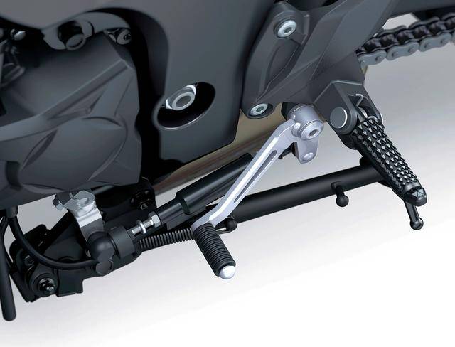車體方面,采用一副鋁合金制的雙翼樑式車架,Showa 配套的 SFF-BP 倒立式前叉(標(biāo)準(zhǔn)行程為 120 mm)、單筒式后減震(SE 版采用 Ohlins 奧林斯的 S46 后減震,標(biāo)準(zhǔn)行程均為 136 mm);外觀造型上,采用了名為 Sugomi Awakens “ 覺(jué)醒的 Sugomi ” 的設(shè)計(jì),風(fēng)格上依舊保留了肌肉外露的特點(diǎn),新的前輪擋泥板,有著更銳利風(fēng)格的 LED 前大燈外罩、車體兩側(cè)的翼子板;采用了新的人體工程學(xué)設(shè)計(jì),新的車把位置;5 英寸 TFT 全彩色數(shù)字式儀表板,座位維持在 815 mm、全車整備重量 221 公斤。