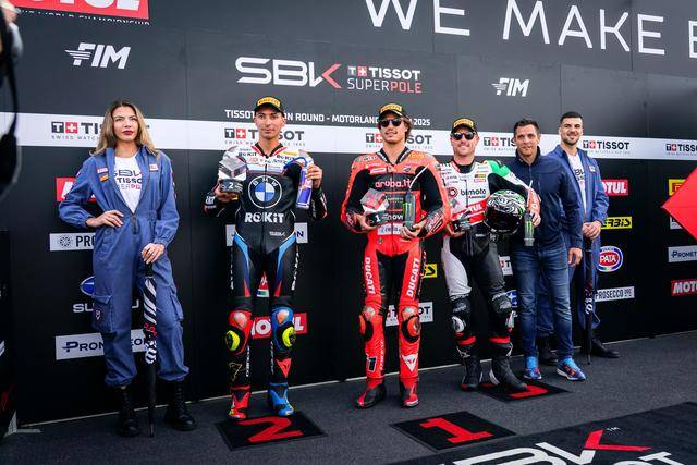 WSBK 級別,賽前的 Super Pole 超級排位賽,駕駛 11 號車的意大利車手布雷加(Nicolo Bulega)以 1 分 47.332 秒、破紀(jì)錄的個人最佳圈速拿下了第一節(jié)正賽的排頭位發(fā)車;后面,駕駛 1 號車的土耳其車手拉格里奧盧(Toprak Razgatlioglu),22 號車的英國車手 A. 洛維斯(Alex Lowes),分別排在發(fā)車位置的第二、第三。