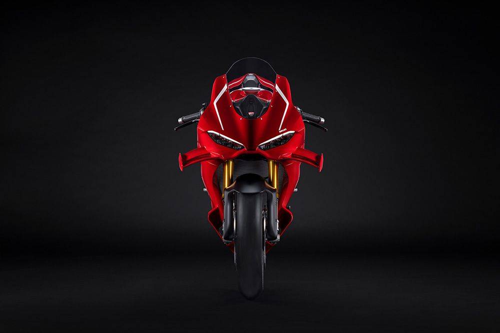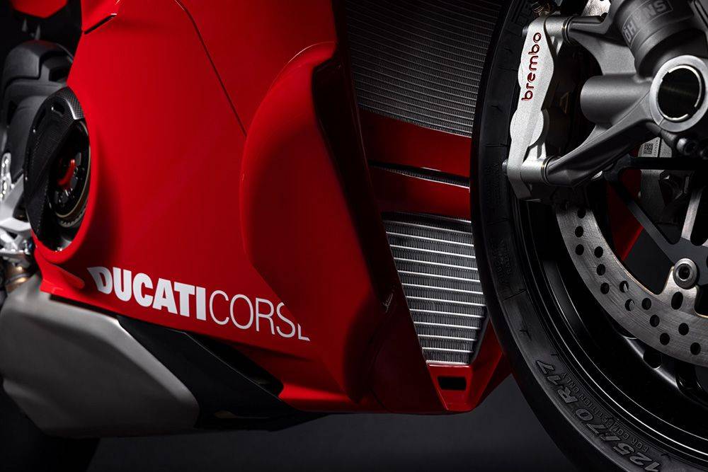 搭配全新設(shè)計(jì)的雙層翼片,V4 R在270公里/小時(shí)時(shí)可額外產(chǎn)生4.8公斤下壓力,300公里/小時(shí)則達(dá)6公斤。 這使得高速時(shí)的穩(wěn)定性與精準(zhǔn)度大幅提升,出彎加速更可控。 另有與杜卡迪Corse共同開發(fā)的動(dòng)態(tài)進(jìn)氣口,在極速下可額外提供1.3匹馬力,對(duì)直線表現(xiàn)大有助益。