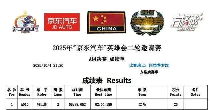 |2025年“京東汽車“英雄會(huì)二輪邀請(qǐng)賽A組決賽成績(jī)單