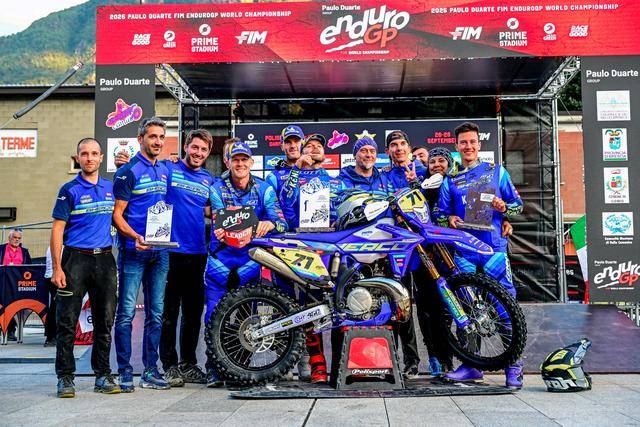 除了 EnduroGP 級別,這兩位車手,加西亞還參加 E1 級別、而維羅納則另外參加 E2 級別的角逐。在 E1 級別,加西亞在兩天的比賽里、分別奪得了冠軍和第四名,這讓他在車手積分榜上、以 233 分大幅領先對手(意大利站之后,積分榜第二名有 175 分)排在榜首,而今年的比賽只剩下一個分站的比賽,加西亞提前奪得了 2025 賽季 E1 級別的世界冠軍。