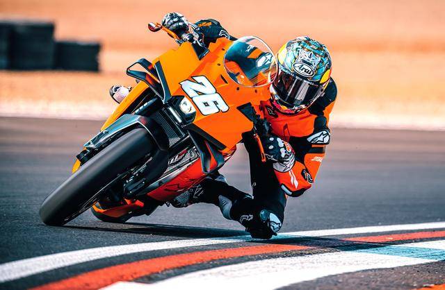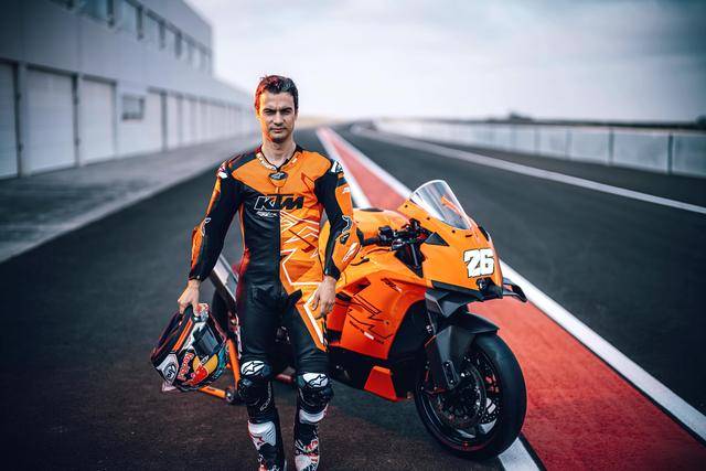 下面的圖片,來(lái)自西班牙的 MotoGP測(cè)試車(chē)手彼杜沙(Dani Pedrosa)、在賽道上試駕 KTM 990 RC R。
