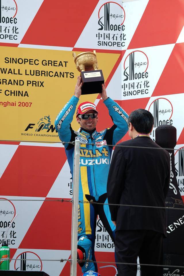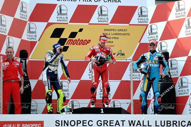 下面的圖片,2007 MotoGP 上海站,奪得季軍的賀金斯(資料圖片)。