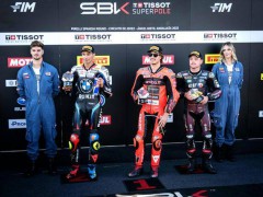 盡管遭遇長圈處罰,但布雷加依然順利奪得了賽程為 10 圈的 Super Pole Race 超級排位賽正賽的勝利 —— 開場的第 1 圈,兩位冠軍爭奪者在 5 號發(fā)生碰撞,拉格里奧盧被迫退出了比賽。賽會以 “ 不負(fù)責(zé)任的騎行 ” 對兩位車手都作出了處罰,布雷加罰一次長圈,而拉格里奧盧因為退賽,其處罰變成了第二節(jié)的正賽、后退至第十名發(fā)車。捌弟、29 號車的意大利車手恩諾尼(Andrea Iannone),則分別拿到了這個競賽環(huán)節(jié)的第二、第三。