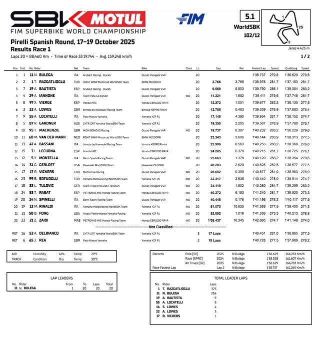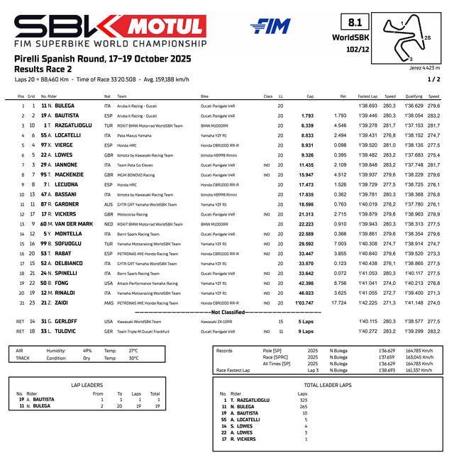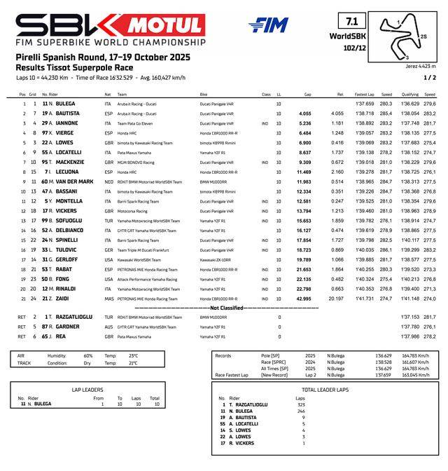 FIM WorldSBK 超級跑車世界錦標(biāo)賽(FIM Superbike World Championship)2025 賽季最后一個分站(第十二站)的比賽,十月 17 - 19 日、在西班牙的捷雷斯(Jerez)賽車場舉行。