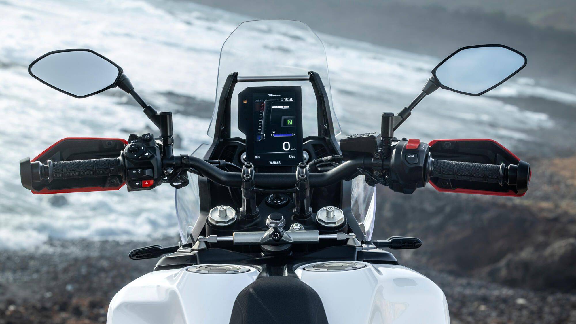 外觀維持 Ténéré 的粗獷輪廓,但線條更利落、細(xì)節(jié)更精致; 四束式LED進(jìn)化為矩形近/遠(yuǎn)燈模組(54×24mm),鋁構(gòu)連結(jié)提升質(zhì)感與照明范圍。 一體式座墊與加厚側(cè)護(hù)件兼具外觀與實(shí)用,展現(xiàn)一種「看起來就能去很遠(yuǎn)」的氣勢。