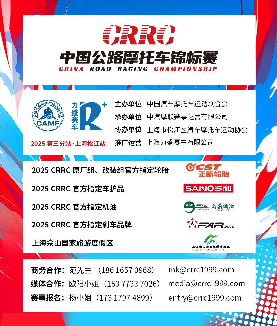 本場比賽我們歡迎熱情車迷們的到來,親歷摩托車運動的激情轟鳴,感受速度的魅力,CRRC不止是一場比賽,在日漸涼爽的黃金十月,我們希望能為廣大車迷打造一個有看有吃有玩的摩托車狂歡周末。