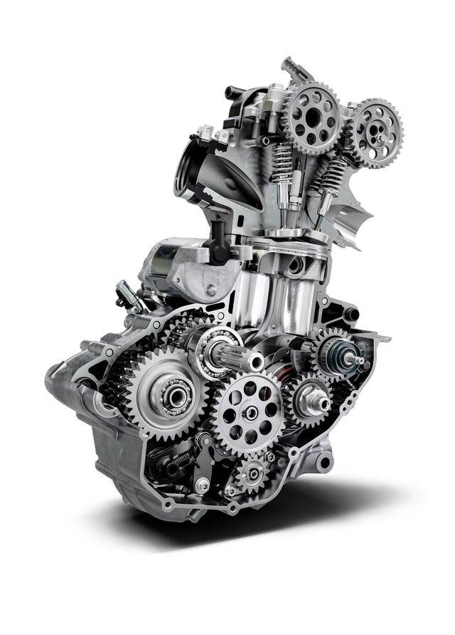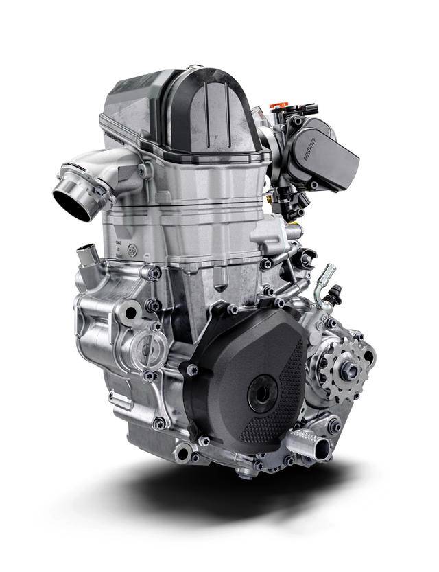 2026 FE 350s 搭載一副水冷四沖程單氣缸、DOHC 四氣閥,排氣量 349.7 cc(缸徑、行程為 88 mm x 57.5 mm)的發(fā)動機,賽車規(guī)格的 FE 350 最大馬力輸出為 51 匹(MX 賽車規(guī)格的 FC 350最大馬力輸出為 57 匹),可上牌規(guī)格的 2026 FE 350s 美國版,峰值馬力輸出預計會略低于該數(shù)字。