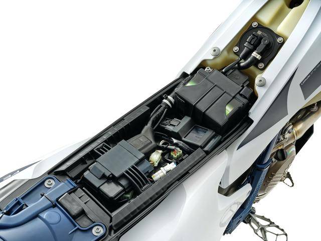 5、為了對應上牌認證規(guī)則的需要,兩個美國版車型均配備了 LED 的燈光系統(tǒng)、小型的數(shù)字式儀表板,后視鏡、側腳架、電門鎖、車體兩側的反光牌等基礎組件。除燃油外的整備重量分別為 112.8 公斤(FE 350s)、114.8 公斤(FE 501s);