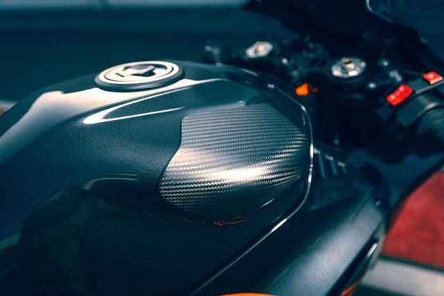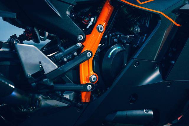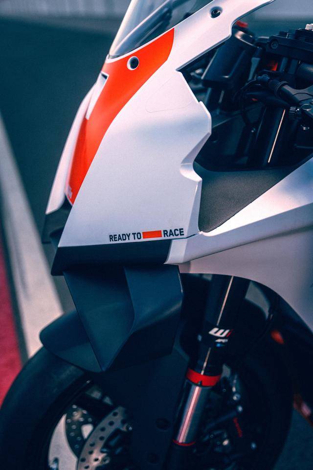 車體方面,采用一副鋼制的車架,車身采用了一個有著明顯的 MotoGP 工廠賽車風(fēng)格、鋒利的外觀造型;全新的人體工程學(xué),能為運動騎行的所有動作提供支撐點、容量為 15.7 公升的新型油箱;WP 配套的 APEX 前后懸掛系統(tǒng);Brembo 布雷博配套的前后剎車卡鉗,8.8 英寸 TFT 全彩色數(shù)字式儀表板,全 LED 的燈光系統(tǒng);電子輔助控制系統(tǒng),標(biāo)配了四個可選的騎行模式;四個 ABS 模式。此外,另有兩個額外付費的選裝套件:帶有賽道模式、圈速計時、啟動控制等功能的 Track Pack 賽道套裝;在包含了賽道套裝的基礎(chǔ)上,增加了巡航控制、快速換檔等功能的 Tech Pack 技術(shù)套裝;