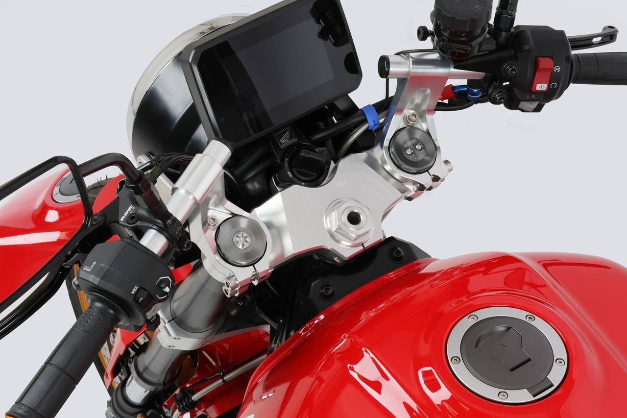 在經(jīng)典色彩之下,ACTIVE動(dòng)了個(gè)大手術(shù):將原本的一體式把手改成了分離式把手(Clip-On Handle)。 這一下,CB1000F的整體剪影立刻「エフ」味爆棚! 因?yàn)檫^(guò)去的CB750F也是采用分離式把手設(shè)計(jì),這種向經(jīng)典致敬的改動(dòng),讓車頭線條更低趴、更有侵略性。