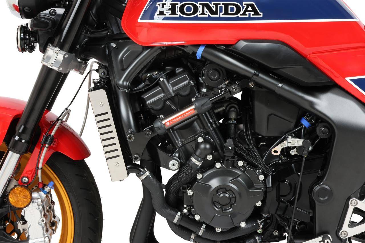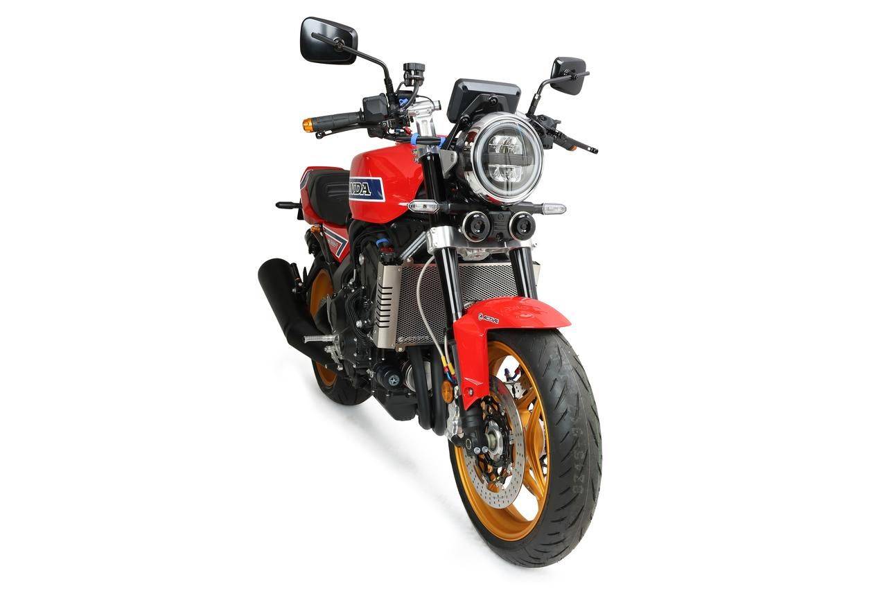 ACTIVE改裝套件重點(diǎn)經(jīng)典復(fù)刻涂裝:車(chē)身采用鮮艷的紅色配藍(lán)色條紋,致敬1979年CB900F(日本CB750FZ)的經(jīng)典「BOL D'OR」配色。