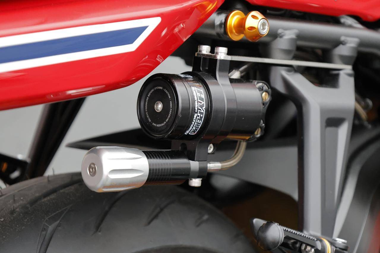 更特別的是,車(chē)體左側(cè)還裝上了同樣正在開(kāi)發(fā)中的高性能阻尼桿(Performance Damper),這玩意兒能有效抑制車(chē)架的細(xì)微震動(dòng),讓高速行駛與過(guò)彎穩(wěn)定性更上一層樓,屬于看不見(jiàn)卻很有感的黑科技。