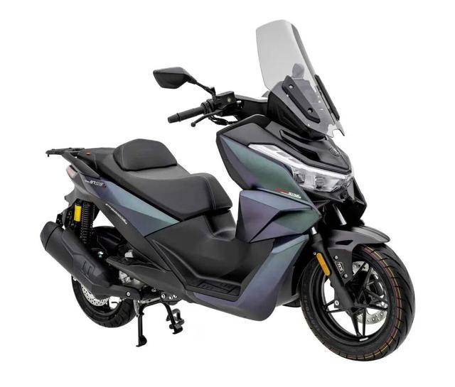 然后就是SR250GT的產(chǎn)品力。這個(gè)車(chē)的線下試駕我們參與過(guò)幾次,實(shí)車(chē)我們騎了好幾次,這個(gè)車(chē)的上路表現(xiàn)非常輕巧,250的動(dòng)力,質(zhì)量甚至達(dá)到了150水平,這一點(diǎn)確實(shí)對(duì)得起這個(gè)車(chē)的slogan——“以輕致快”。在實(shí)用性方面,這個(gè)車(chē)也非常有表現(xiàn)力。馬桶下的儲(chǔ)物空間能放一個(gè)全盔+一個(gè)半盔,配置豐富,胎壓監(jiān)測(cè)、電熱手把等實(shí)用配置都有??梢哉f(shuō)這個(gè)車(chē)的每一招都插在大家的關(guān)注點(diǎn)上了。