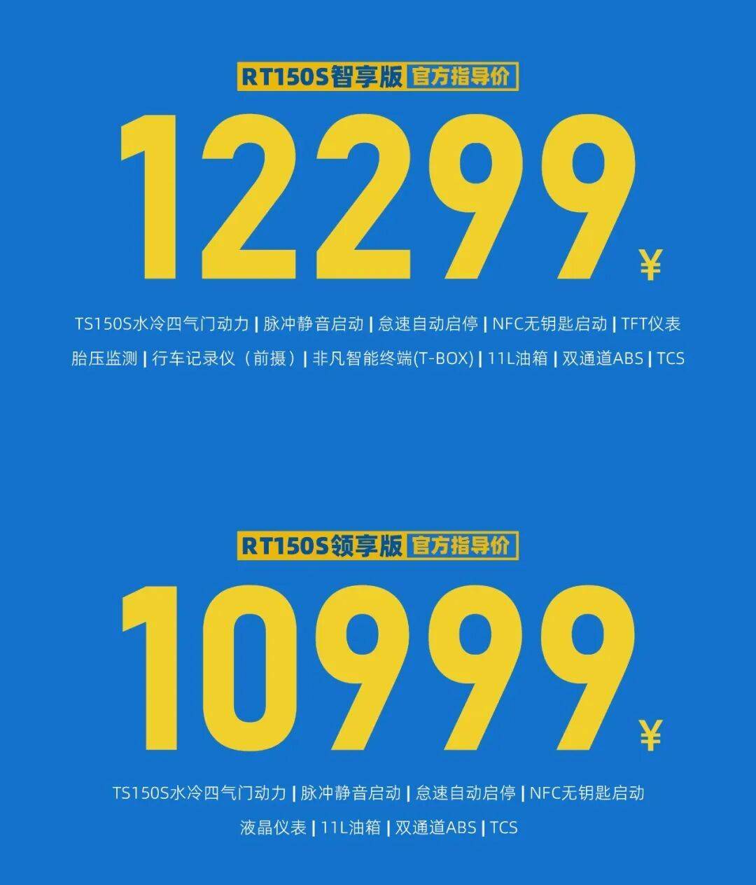 10月30日,賽科龍又上市了一款150平踏,RT150S,領(lǐng)享版10999、智享版12299。