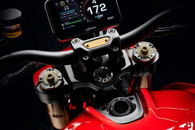 9、采用了全新的 5 英寸 TFT 彩色數(shù)字式儀表板,輕質(zhì)化的鋰電池,容量為 16.5 公升的油箱,不含燃油之下的整備重量為 195 公斤。