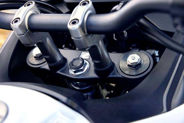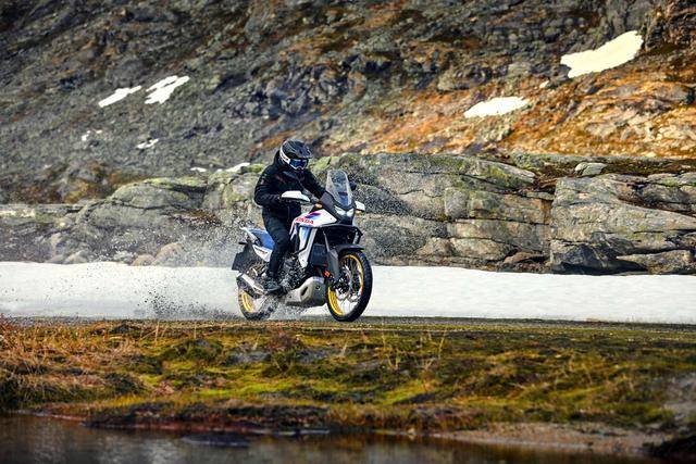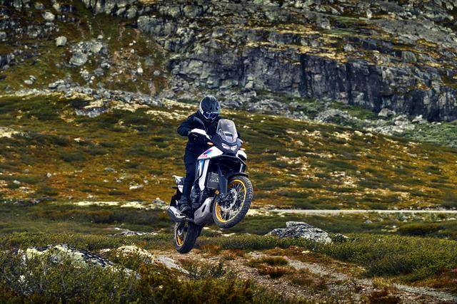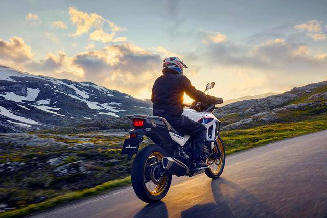 其他方面,采用了 5 英寸的 TFT 全彩色數(shù)字式儀表板(也是 2025 款才更新上去的裝備),前 21、后 18 英寸直徑的車輪,850 mm 的標(biāo)準(zhǔn)鞍座高度(可選裝 820 mm 的低鞍座?,F(xiàn)行國內(nèi)版的標(biāo)準(zhǔn)鞍座高度為 855 mm),整備重量 210 公斤、216 公斤(電子離合版)。電子輔助控制系統(tǒng)方面,標(biāo)配了 TBW 電子控制油門,四個可選的騎行模式(Sport 運(yùn)動、Standard 標(biāo)準(zhǔn)、Rain 雨天、Gravel 砂礫),四級 EP 發(fā)動機(jī)動力輸出可選、EB 三級發(fā)動機(jī)制動可選、兩級 ABS和五級 HSTC 牽引力控制可選;HSTC 牽引力控制和后剎車的 ABS 具有可關(guān)閉功能。